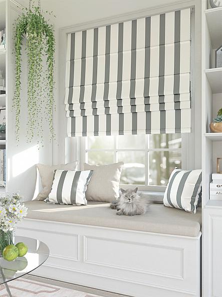 Римские шторы отличаются своей простотой. Обычно они состоят из тканевого полотна с вшитой планкой-утяжелителем в нижней части, которая помогает сохранять аккуратную форму. В изделие вшиваются тонкие стержни вставки из пластика, обеспечивающие равномерные складки при подъеме.Также существуют модели без жестких вставок — с внутренней системой тесемок или шнуров, позволяющей управлять подъемом. Такие шторы собираются в аккуратные складки, образуя ровный край, хотя при этом теряется некоторая устойчивость и четкость формы.